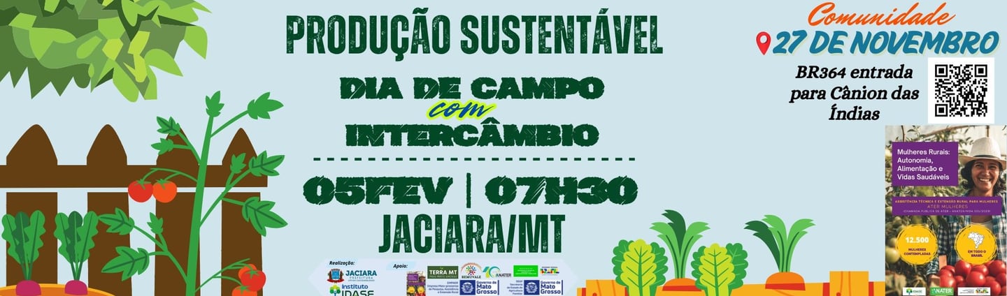 O 1º Dia de Campo com Intercâmbio foi uma realização da Prefeitura de Jaciara, através da Secretaria Municipal de Agricultura, em parceria com o Instituto de Desenvolvimento Agroecológico, Socioambiental e Educacional (Idase), e contou com o apoio da Remuvale, Anater, Terra MT, Empaer, Seaf e Governo do Estado de Mato Grosso.